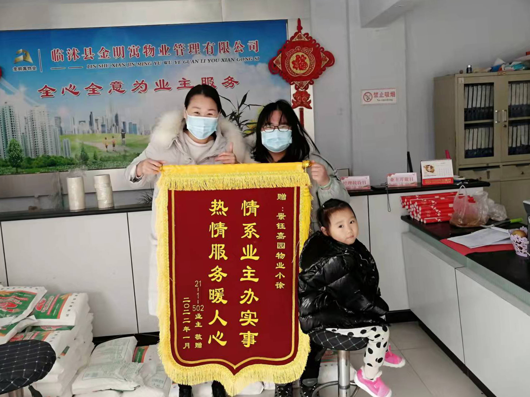 【概要描述】阳春三月,春暖花开,金明寓物业真诚服务和着春天的节律温暖业主的心。物业收费员徐敏用真情打动业主,帮助业主解决困难,业主送来锦旗感谢。