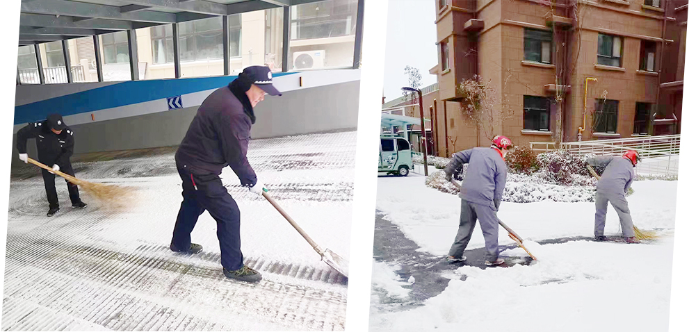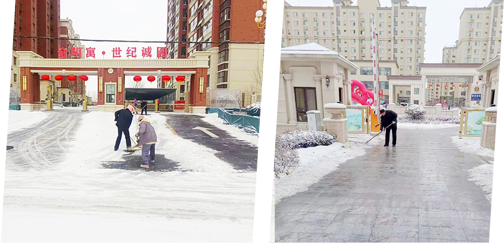 近日,连降霰雪,道路结冰严重,业主出行困难,金明寓物业服务的所有小区和单位迅速行动,展开扫雪、除冰工作。